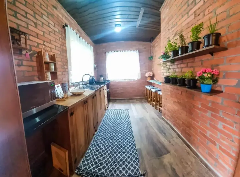 O Chale Greifswald Pomerode está situado na Rua Victor Weege 78 Casa, Pomerode, CEP 89107-000, Brasil. O chalé oferece acomodações confortáveis com quartos familiares dotados de ar-condicionado, varanda e sofá-cama. Os hóspedes têm acesso a uma cozinha totalmente equipada com fogão, micro-ondas e chaleira elétrica, além de frigobar, TV e produtos de toalete gratuitos. A propriedade conta com estacionamento privado gratuito e área externa com jardim. Localizado perto de pontos turísticos como Parque Natural Freymund Germer (6 km), Vila Germânica (31 km) e Castelinho da Havan (32 km), o chalé também está a 53 km do Aeroporto Internacional Ministro Victor Konder. Os comentários destacam a limpeza impecável, o ambiente acolhedor e a presença de animais no local.