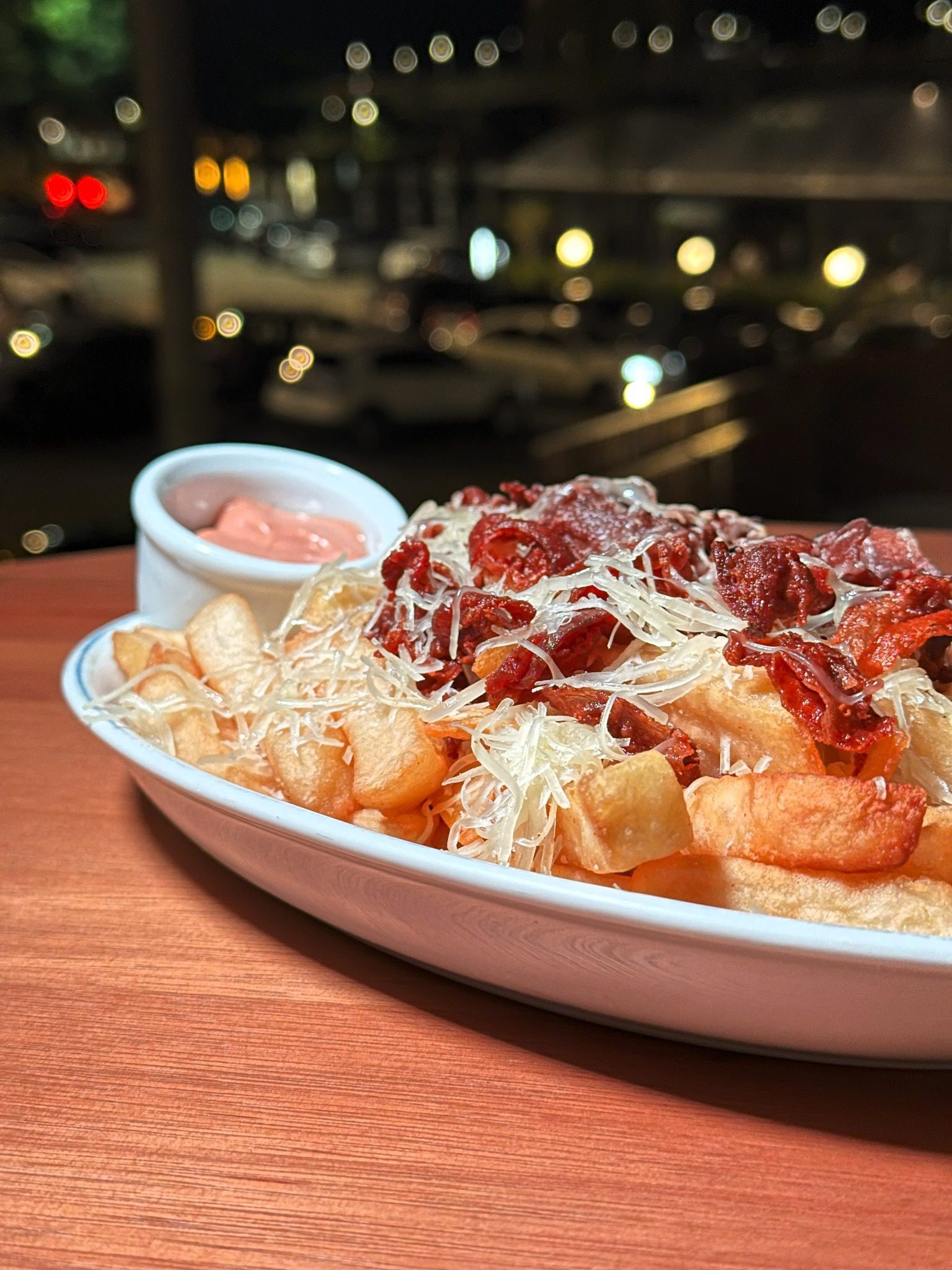 Enquanto o lado de dentro embala e alimenta a sua experiência, o lado de fora é um espetáculo à parte. Olhando para fora é possível ter a vista da cidade, incluindo a Ponte Hercílio Luz, que está entre os principais pontos turísticos de Florianópolis.